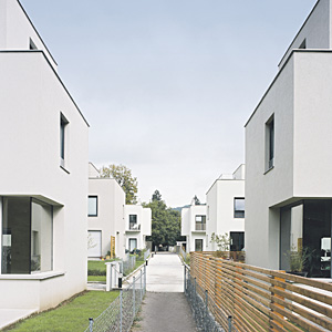 Die Wohnhausanlage beeindruckt durch funktionell und räumlich interessante Einzel- und Doppelhäuser, welche formal hochwertig in bautechnisch einfacher Weise preisbewusst gelöst sind.